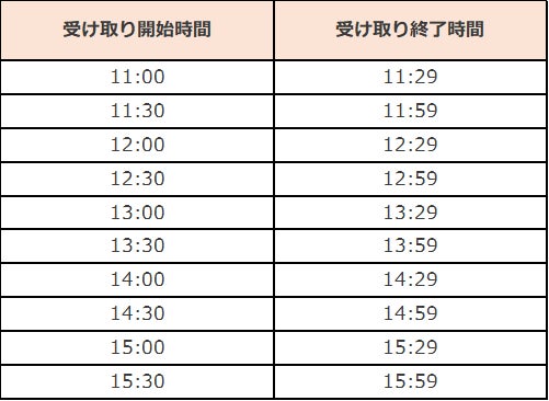 ※時間選択は「受け取り・お支払いの設定」ページの「受け取り時間を設定する」ボタンよりご選択いただけます。