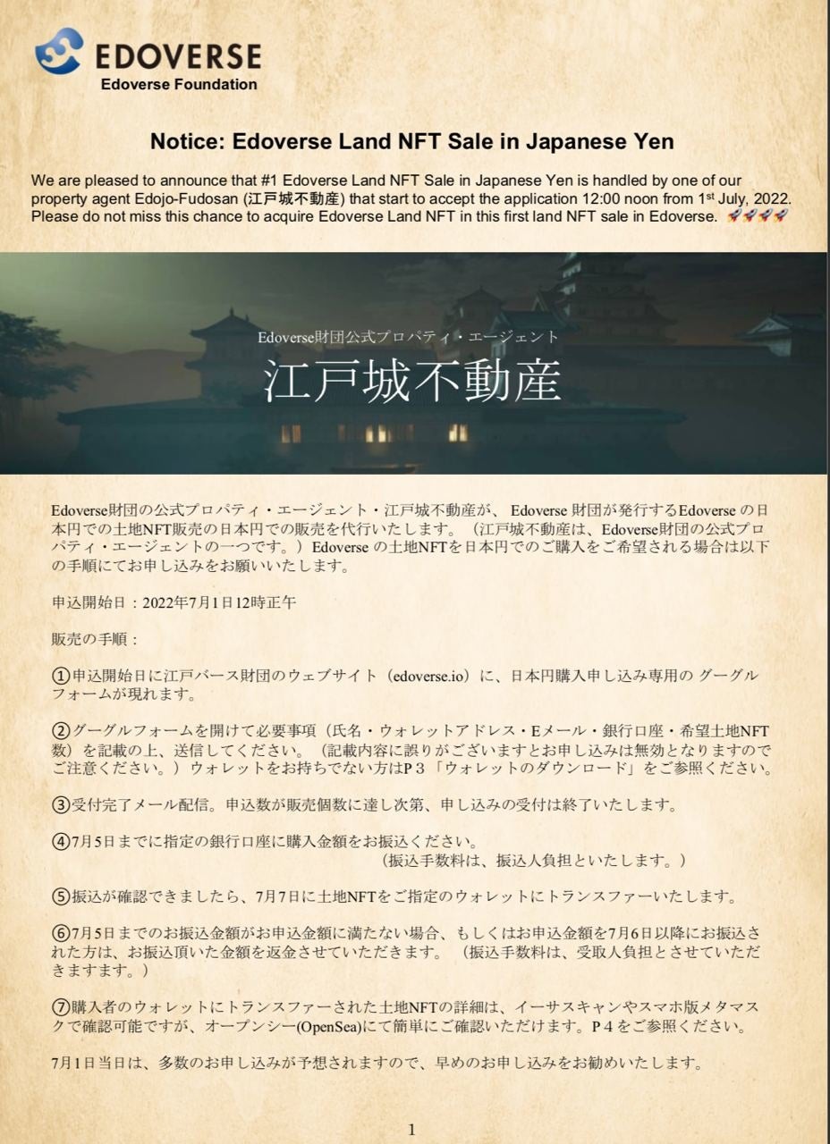 Edoverse Foundationが日本円で土地NFTを購入する方法を発表!