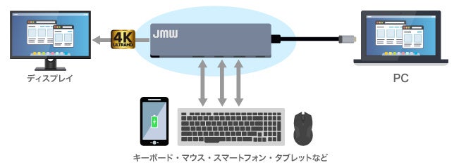 HDMI表示機器や複数のUSBデバイスをまとめて接続