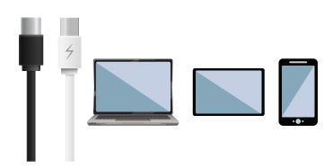 PCのUSB Type-Cポート(ディスプレイポート オルタネートモード)やMacのUSB-Cポート(Thunderbolt4/ Thunderbolt3)と互換性があります。また、映像出力可能なタブレットやスマートフォンにも対応します。