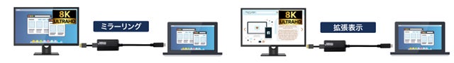 最大8K@60Hzの高解像度をサポートし、ミラー・拡張表示に対応