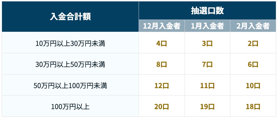 3.キャンペーン期間中に、月に合計10万円以上の入金を行っていただくこと
