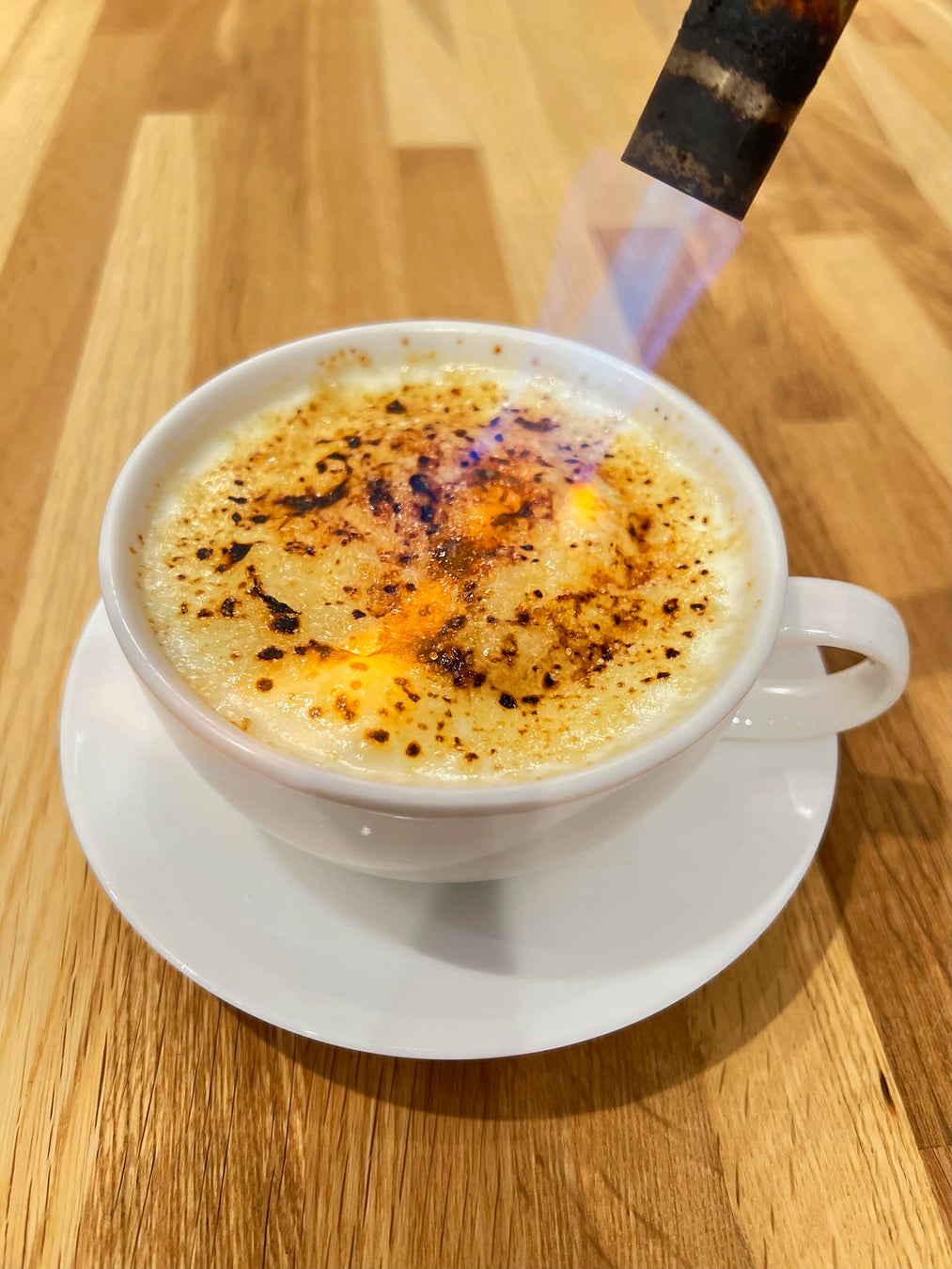 表面をバーナーで炙ることによりパリパリとしたブリュレの香ばしさと、