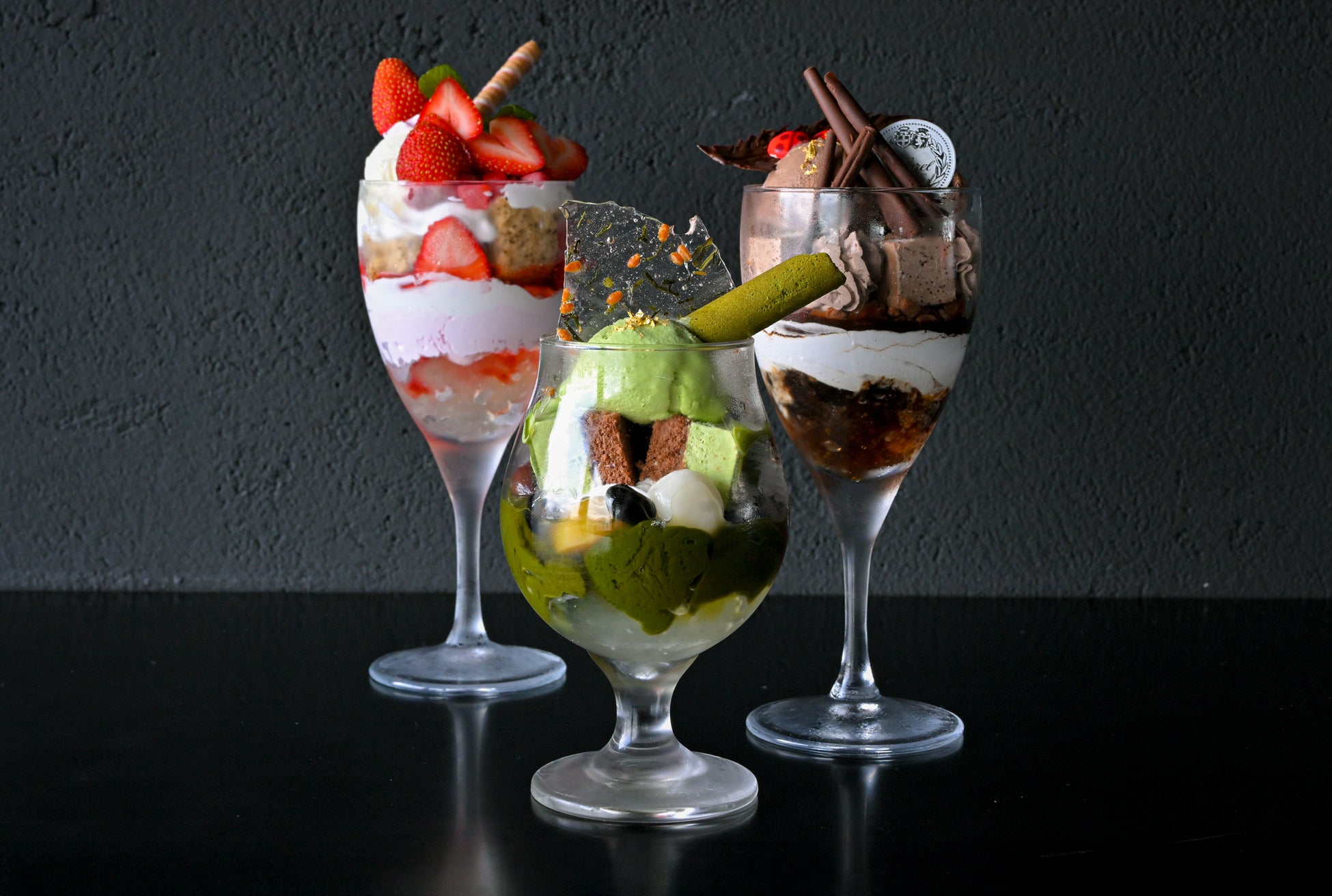 期間限定の「季節のパフェ 春恋いちごパフェ」と、「濃厚カカオ香る カカオ ノワール」、「祇園辻利の抹茶を使用した 大人の抹茶パフェ」の3種類の夜パフェは見た目にも美しく、旬のフルーツや厳選された素材から作られており、甘さや苦み、酸味など、夜の“シメ”として召し上がっていただくのにぴったりな大人な味わいが魅力です。ボリューム感たっぷりに仕上げているので、カップルやご友人同士でシェアしてお楽しみいただけます。今後も、旬のフルーツなどを使用した期間限定のスペシャルなパフェを提供していく予定ですので、ぜひご期待ください!