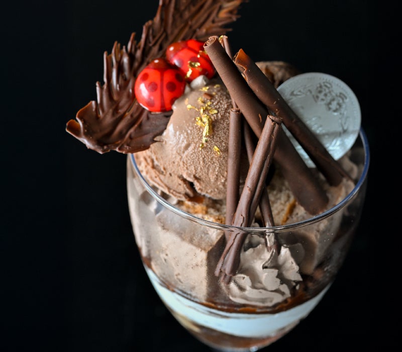 神戸の人気パティスリー「カファレル」のジャンドゥーヤを使用した濃厚チョコレートパフェ。