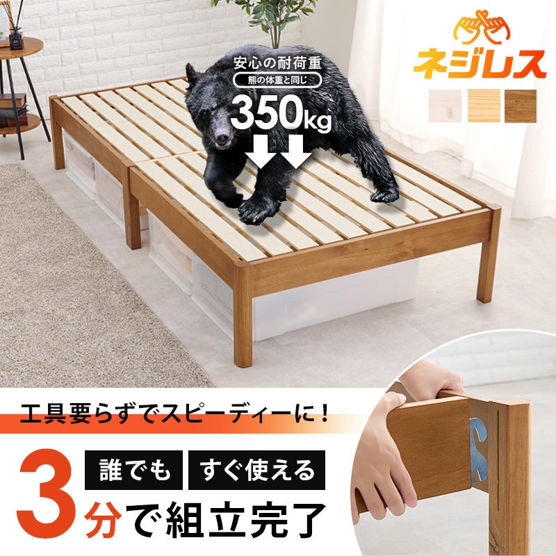 工具不要、3分で組み立てられる、すのこベッドシリーズ「ネジレス」。