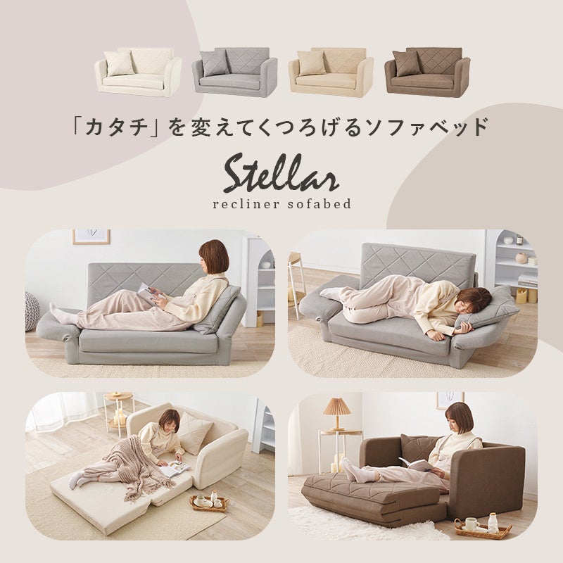 広げるだけでベッドにもなるソファベッド。ソファ時はコンパクトなので、一人暮らしやワンルームのお部屋にぴったりなサイズ感。ごろごろしたい時や、急な来客時には背もたれを伸ばして簡易ベッドとして活躍する高機能なアイテムです。