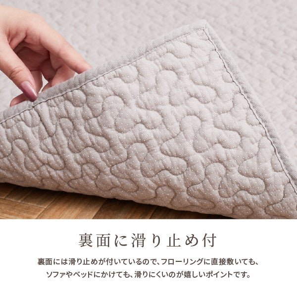 SNSで人気の韓国のおふとん「イブル」。そんなイブルをもっと手軽に機能的にするため、裏にすべり止め加工を施しました。滑り止めが付いていることで、ラグとして、マンスリーフォトの背景として、ソファカバーとしてなど色々使える点が、ママ層を中心に幅広く支持を得ています。