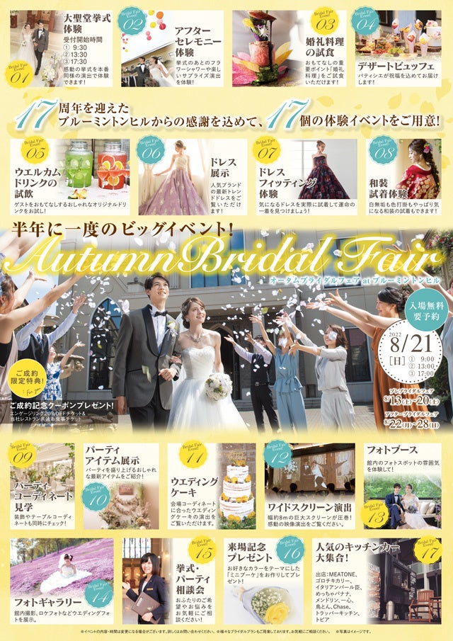 ブルーミントンヒルで半年に一度開催される、最大級のブライダルフェアが8月21日(日)に開催。