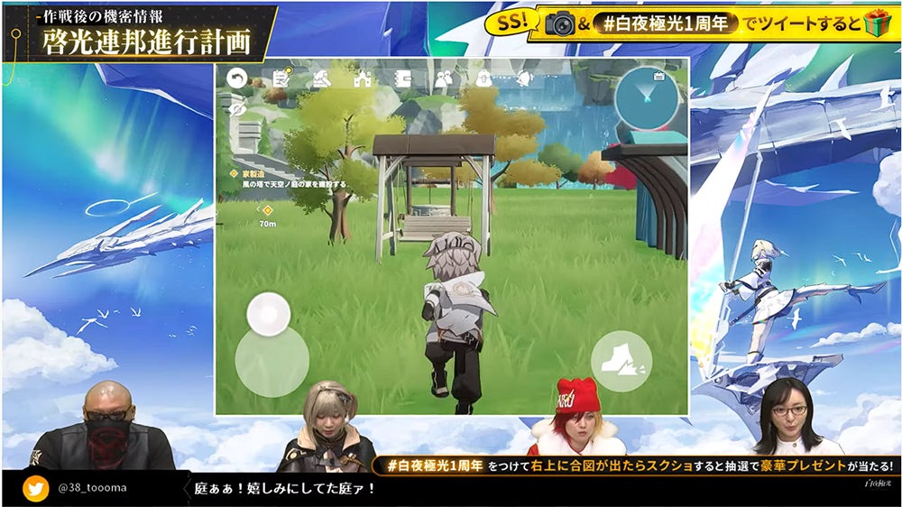 ナビゲーターの皆様と共に1年間を駆け抜けてきた『白夜極光』は、6月2日16:00から(木)に周年記念放送「啓光作戦会議」を配信しました。MCはマフィア梶田さん、ゲストに、伊織もえさん、桃月なしこさん、松澤千晶さんという超豪華メンバーを迎え、ほのぼのとした雰囲気の中でこの1年を振り返った後に、初公開の最新情報、様々なイベントやキャンペーンを公開! さらに番組の要所では啓光連邦の大元帥であり、今回のアップデートの目玉キャラでもあるレインハトが登場。MCやゲストと絶妙な掛け合いをしながら番組は和やかに進行し、周年記念放送は大いに盛り上がりました。では、さっそく最新情報を中心に、先日の番組の様子を振り返ってみます。