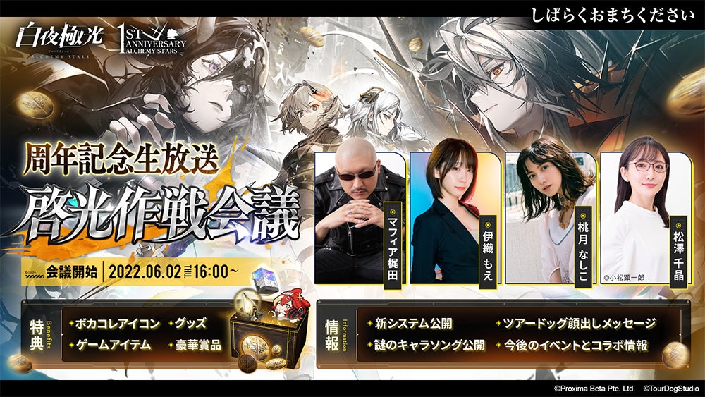 幻想的かつユニークなストーリー、美麗なグラフィック、豪華声優陣による個性豊かなキャラクター等で話題となり、ローンチとともにApp StoreとGoogle Playでランキング1位に輝き、さらに現在登録者数1600万人を突破している『白夜極光(びゃくやきょっこう)』。6月2日(木)にアニバーサリーを迎え、超豪華ゲストによる記念生放送「啓光作戦会議」が開催されました。放送では、『白夜極光』のこれまではもちろん、最新情報としてアニバーサリアップデート【赤き槍の栄光】を中心に、イベント&キャンペーン等の最新情報をまとめてお届けしました。生配信を見逃した方や振り返りたい方は、ぜひこの本リリースでご確認ください!