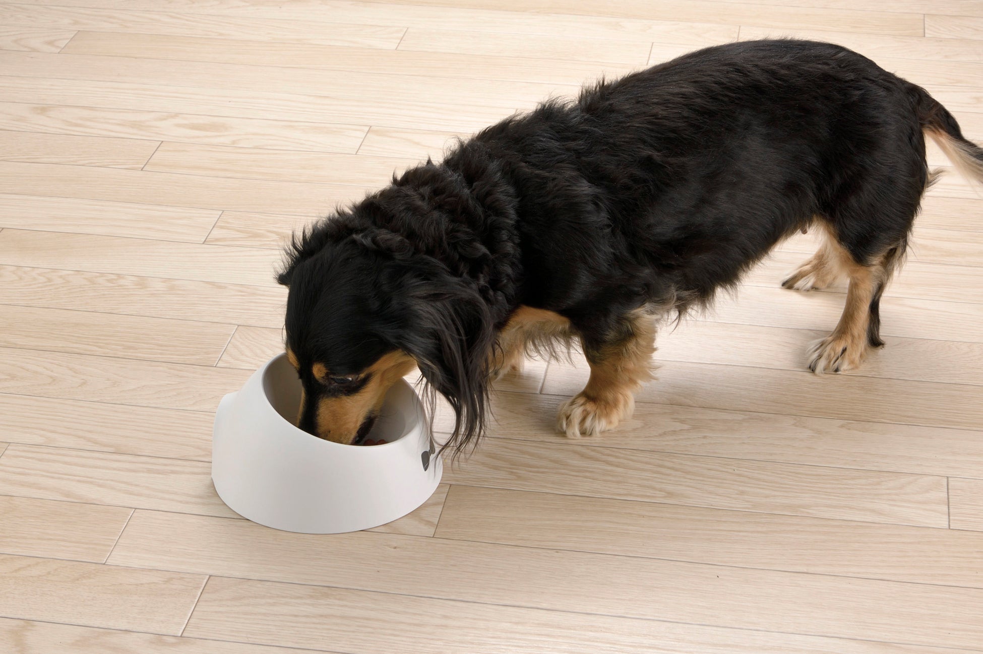 「乾きやすい食器」は食器を立てて乾かすことができるので、洗った後にシンク横にサッと置くことができ人用食器と分けることができます。立てて置くことで水はけもよく乾かせ、スペースも取りません。また、お椀型でフードが中央に集まりやすく、食べやすい形状です。サイズは超小型犬用と小型犬用の2サイズ、犬種によって深さを選べます。ゴム脚付きなので、食器がズレにくく床をキズつけません。