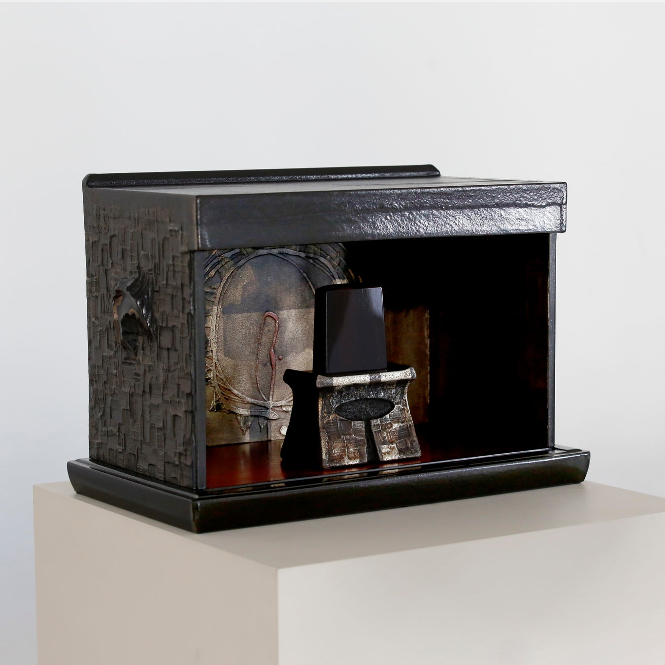 新作の漆芸位牌・厨子が並ぶ。「祈りのかたち 藤野征一郎 漆芸展」12月7日(土)より銀座にて開催