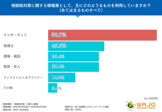 そこで、『相続税対策に関する情報源として、主にどのようなものを利用していますか?(あてはまるものすべて)』と情報源をどこに頼っているか聞いてみました。
