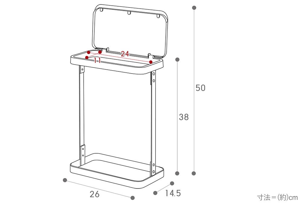 - サ イ ズ :約26cm×奥行約14.5cm×高さ約38cm(蓋を開いた時の高さ約50cm)