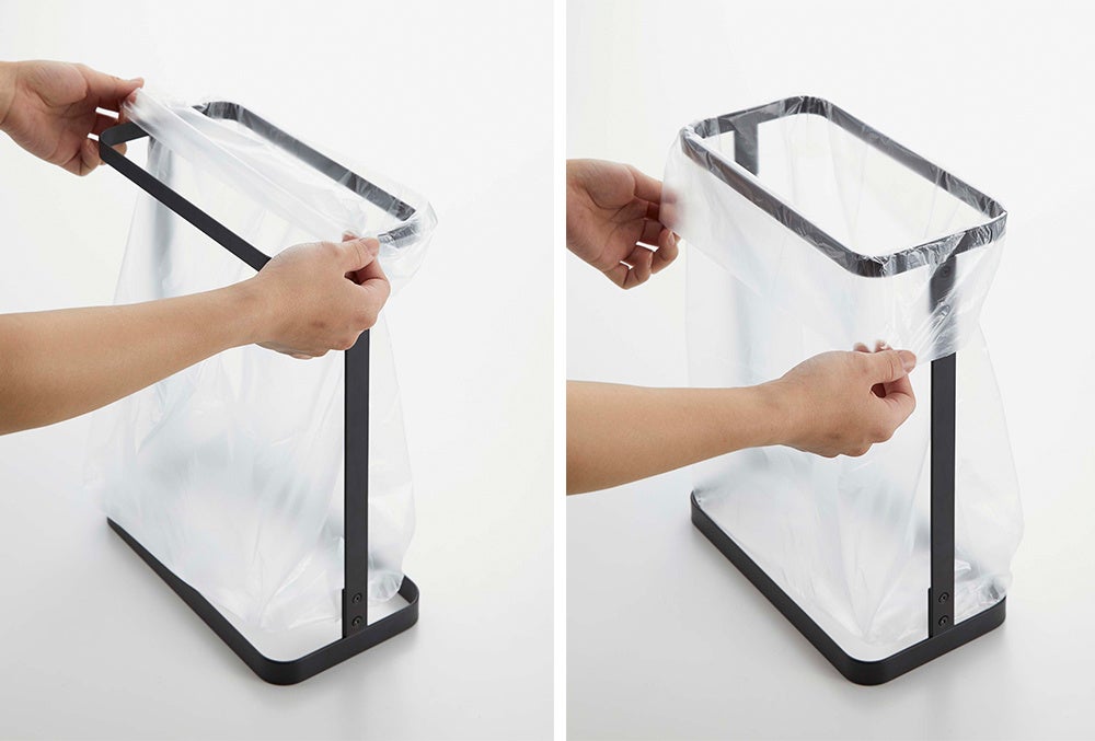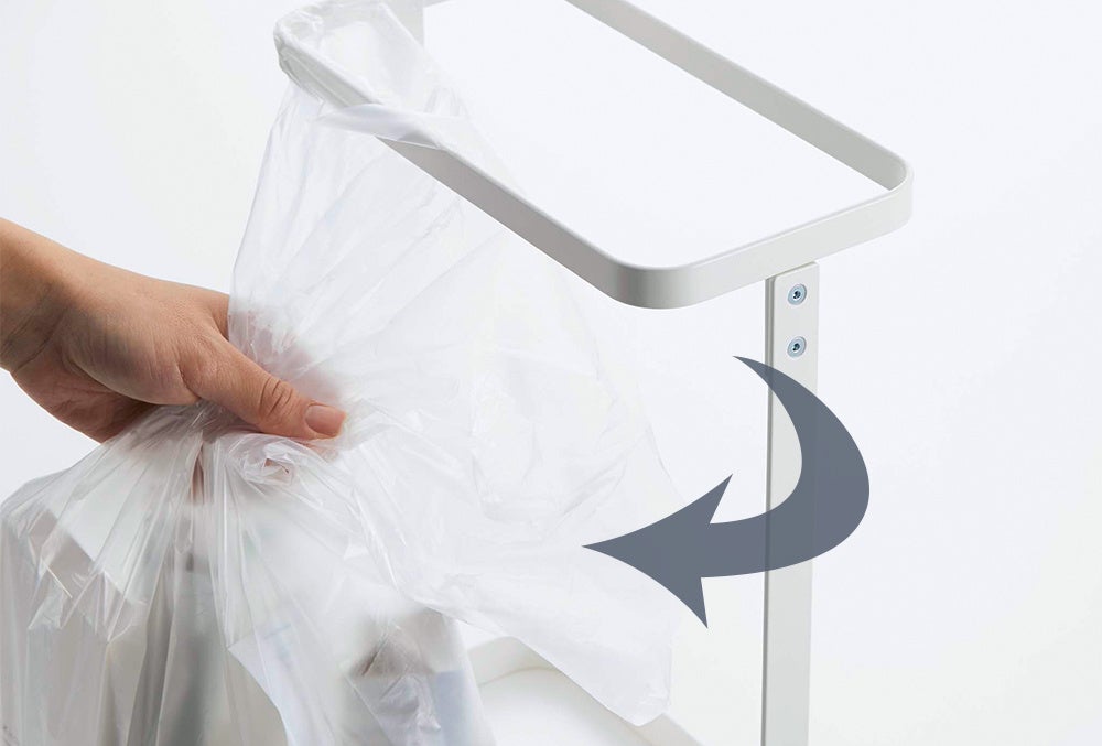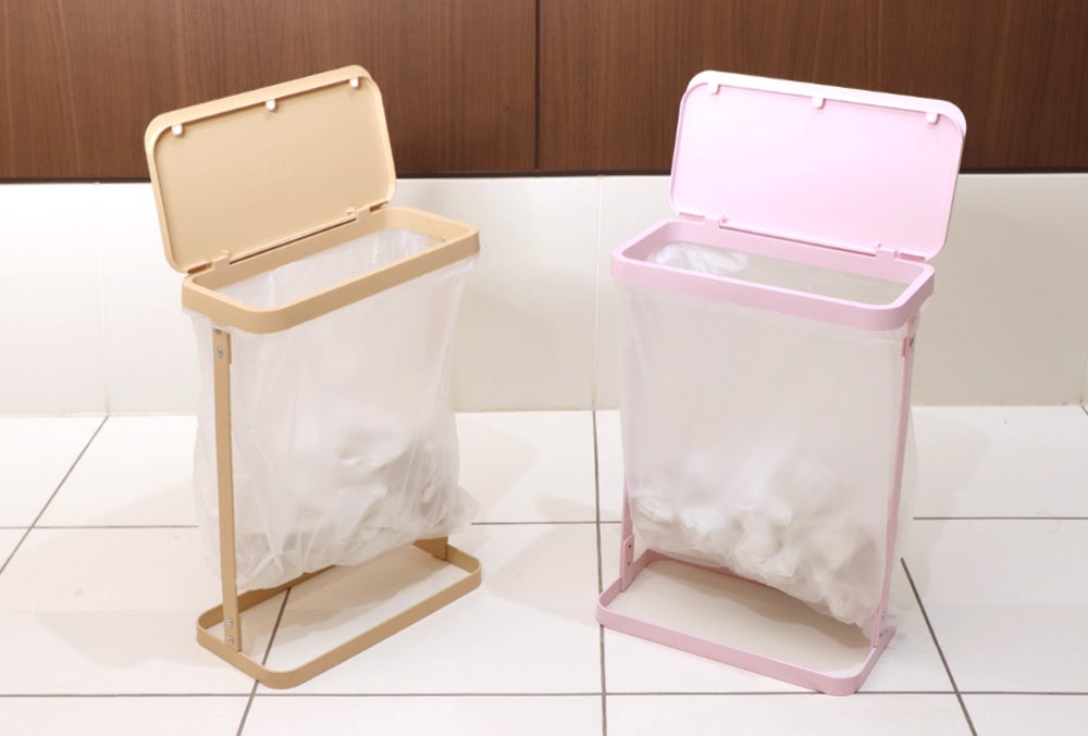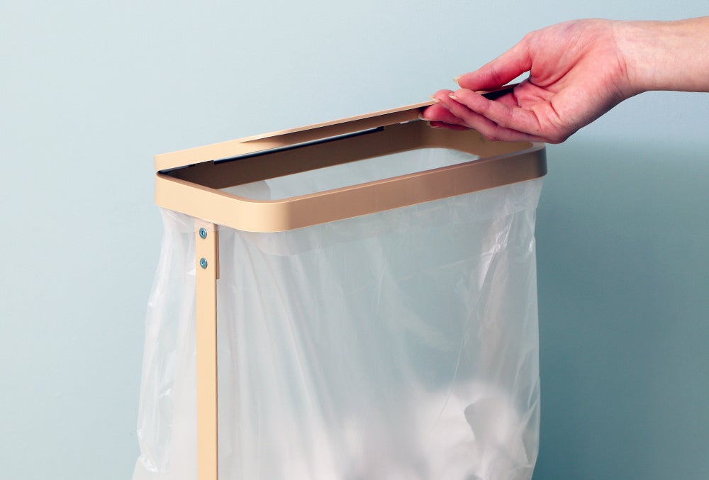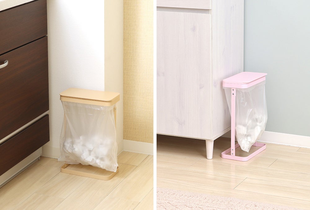 キッチンやサニタリーなど、頻繁にゴミ袋を変えたい方や、子供部屋や寝室にぴったりのサイズ感となっています。また、フタは開閉時にスペースをとらない横開きの設計となっており、高さが限られた場所でも設置しやすいフタつきゴミ袋ホルダーです。袋を透明にすれば中身が見えるので、分別用のゴミ箱としても人気があります。