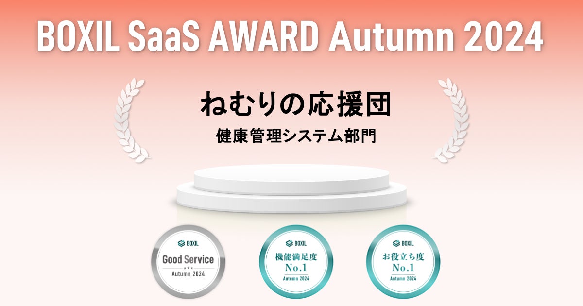 ねむりの応援団、「BOXIL SaaS AWARD Autumn 2024」健康管理システム部門で「Good Service」ほか2つのNo.1に選出