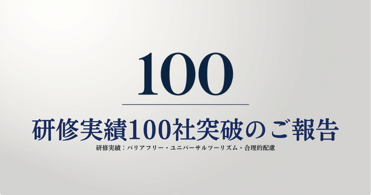一般社団法人Ayumi(代表理事:山口広登、所在地:東京都渋谷区。以下「Ayumi」)は、バリアフリー・ユニバーサルツーリズム・合理的配慮に関する研修実績が100社を突破したことをお知らせいたします。