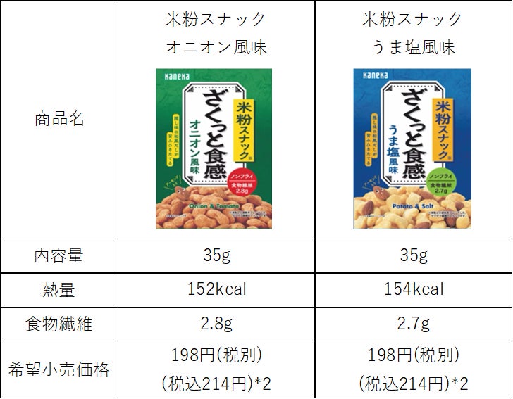 株式会社カネカ(本社:東京都港区、社長:藤井 一彦)のグループ会社であるカネカ食品株式会社(本社:東京都新宿区、社長:福﨑 太、以下 カネカ食品)は、「だしとま オニオン風味」「だしじゃが 甘塩仕立て」の商品名およびパッケージデザインをリニューアルし、2024年7月中旬より「米粉スナック オニオン風味」「米粉スナック うま塩風味」として全国の量販店*1にて順次発売いたします。