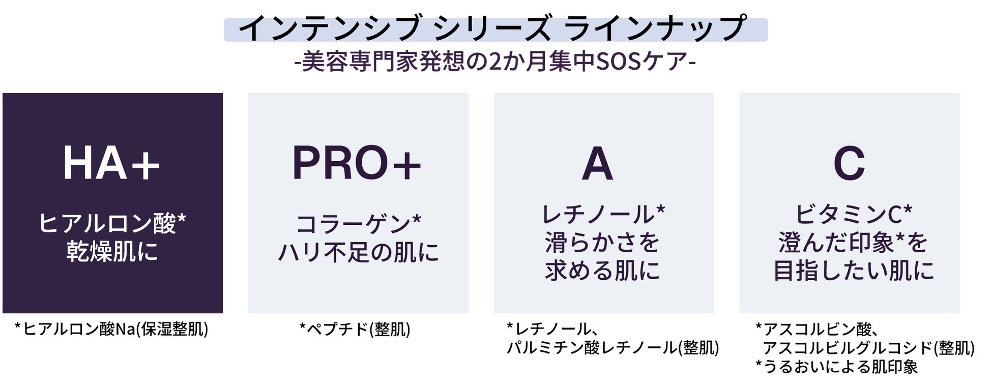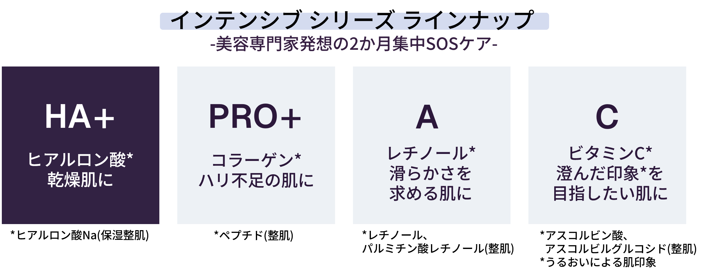 インテンシブシリーズは、美容専門家発想の肌のSOS サインと深く向き合う2 か月集中ケア。