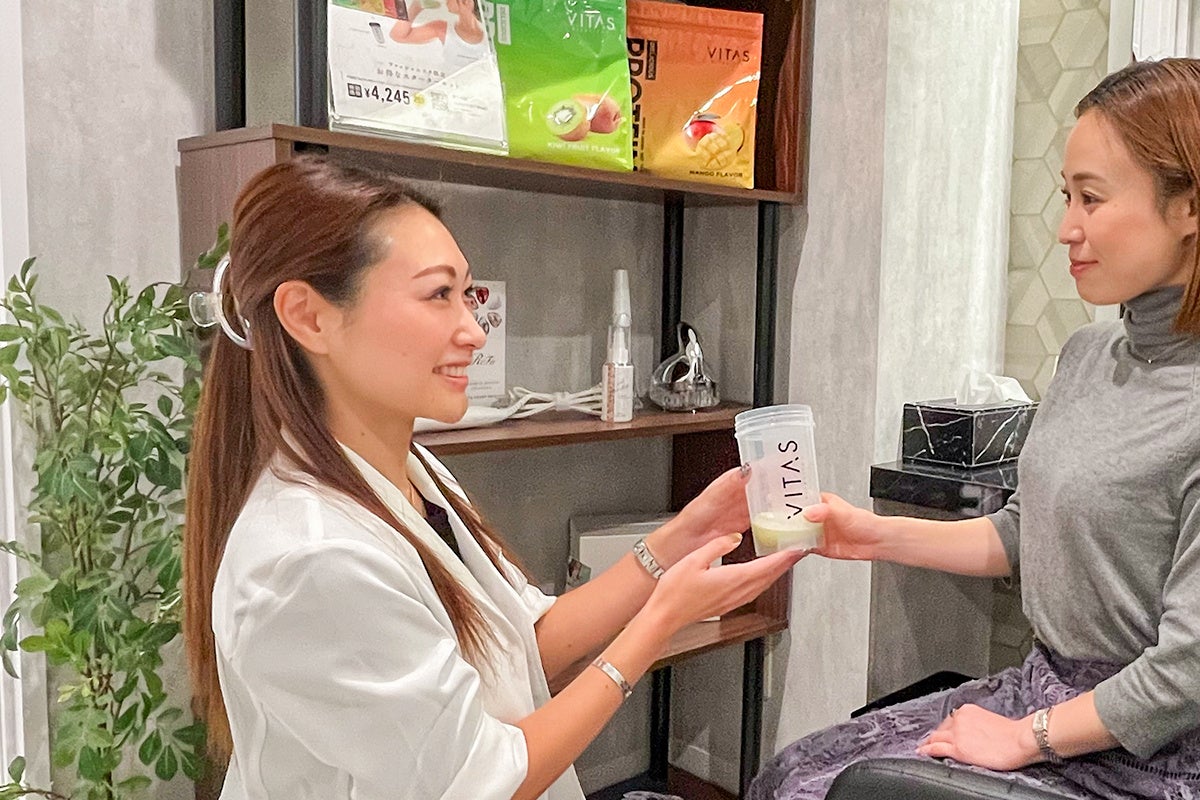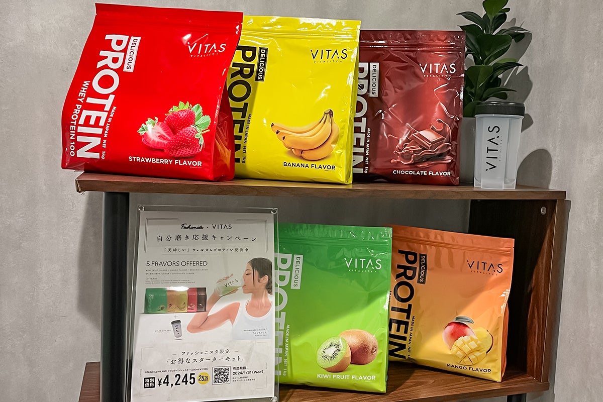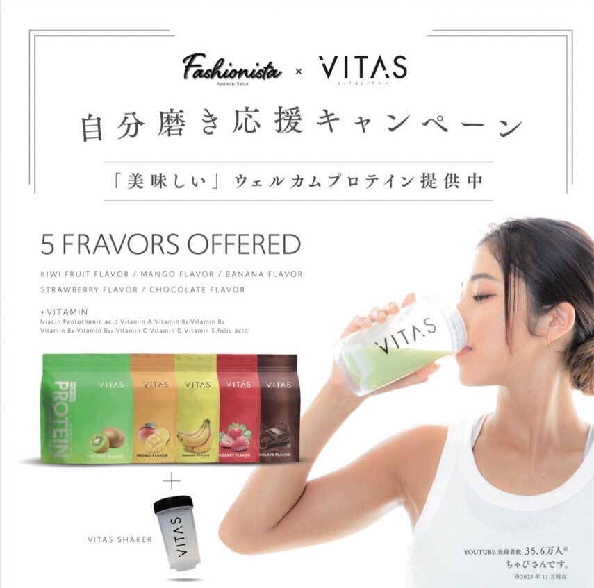 VITASでは、美容感度が高い女性の方々へプロテイン摂取のメリットをお伝えするべく、女性専用エステサロン「Fashionista恵比寿」様とのコラボ企画を2024年1月31日まで実施しております。