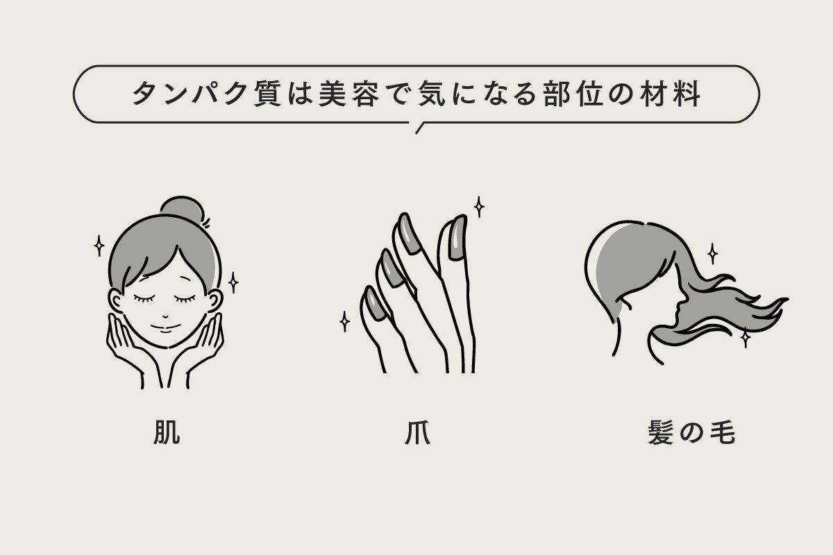 女性の中には食が細い方やダイエットで食事制限を行なっている方など、タンパク質が不足しがちな方が多くいます。身体からタンパク質が不足すると、肌や髪、爪など美容に気になる部位に栄養が行き届きにくくなる恐れがあります。