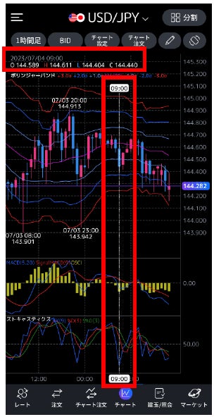 ●チャート上への四本値の表示を可能にしました(対象のローソク足を選択時)