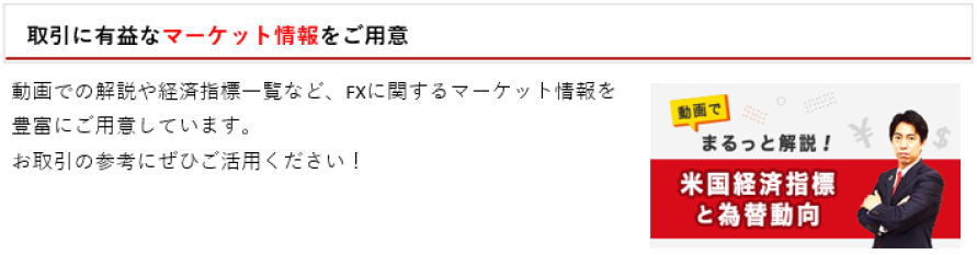 最新ニュースや経済指標の発表予定や結果、アナリストによるマーケット解説動画など、取引に役立つ情報を豊富に提供!