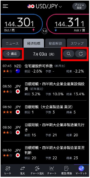 為替相場の急変時、経済指標の発表前・発表時に当該情報をプッシュ通知でタイムリーにお知らせ!