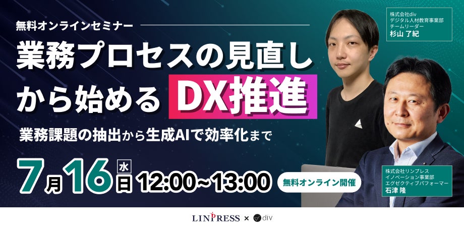 【div×リンプレス】7/16開催ウェビナー「業務プロセスの見直しから始めるDX推進 ~業務課題の抽出から生成AIで効率化まで~」