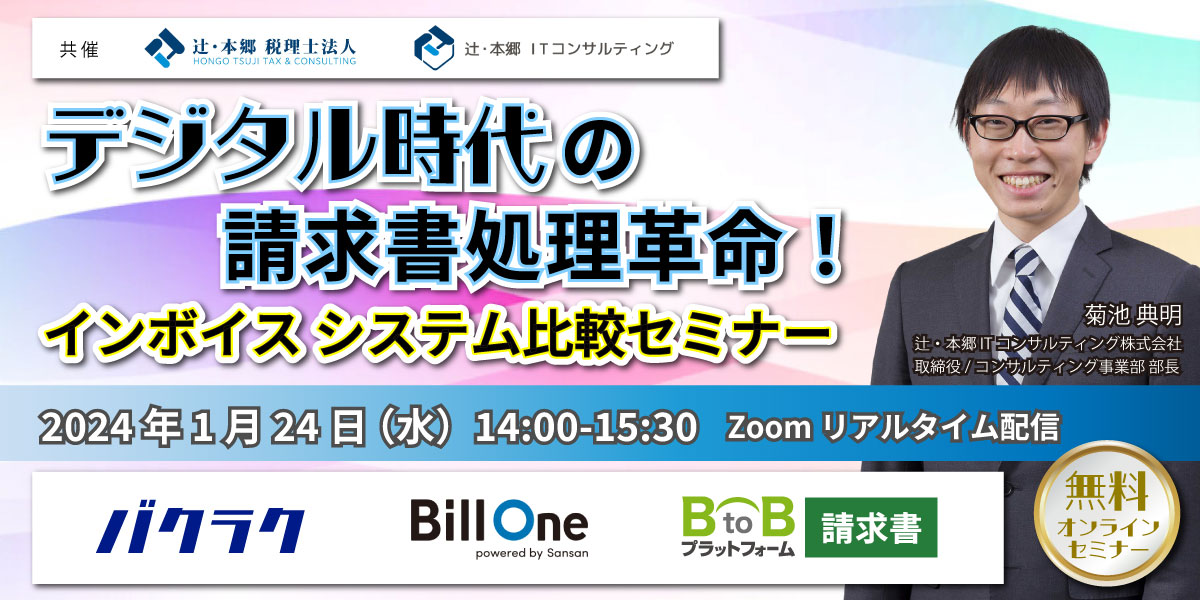 【1/24開催】無料セミナー【デジタル時代の請求書処理革命!「インボイス システム比較セミナー」】辻・本郷 税理士法人/辻・本郷 ITコンサルティング株式会社(共催)共催