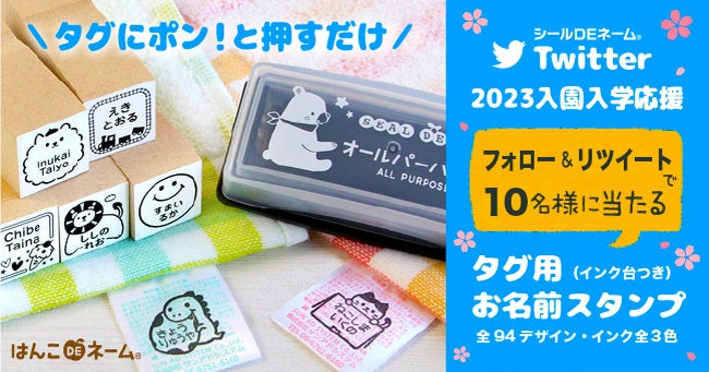 Twitterフォロー&リツイートで、入園入学準備に役立つ「タグ用お名前スタンプ」が10名様に当たる《本日開始》