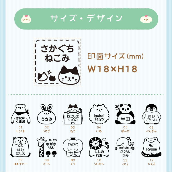 2012年の発売開始以来、繰り返し手軽に使える便利なお名前スタンプとして、多くのユーザーにご愛用いただいているブランドです。入園入学準備に便利なスタンプセット商品からはじまり、洗濯タグ用スタンプ、兄弟用の追加セット、マスクスタンプなど、時代に合わせた商品を展開し続けています。