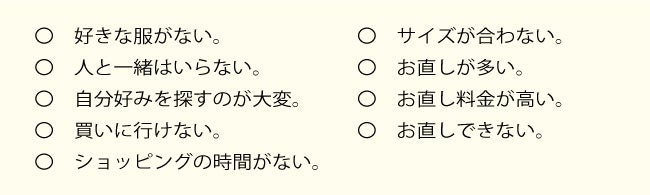 1 着からお作りしご自宅にお届け致します。ご自宅にいながら楽しくショッピング出来ます。