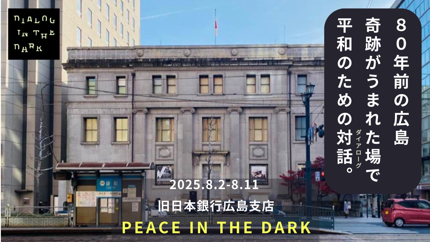 一般社団法人ダイアローグ・ジャパン・ソサエティ(港区・代表:志村季世恵)は、真っ暗闇のソーシャルエンターテイメント「ダイアログ・イン・ザ・ダーク」の特別プログラム「ピース・イン・ザ・ダーク」を2025年8月2日(土)~8月11日(月・祝)に、旧日本銀行広島支店を会場に開催いたします。