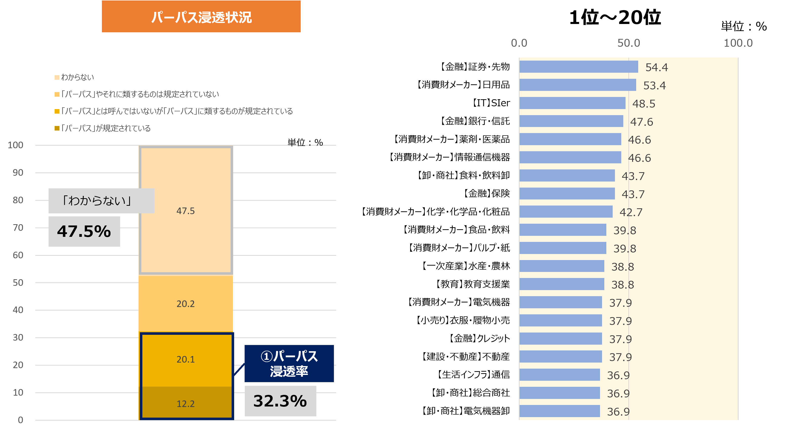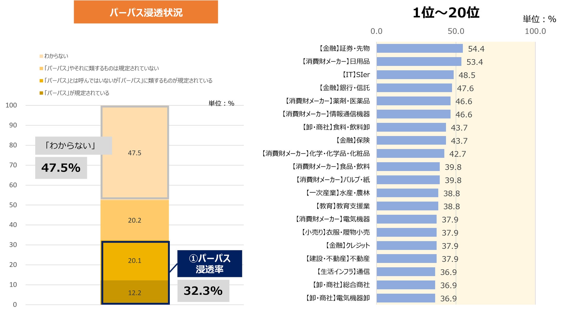 業界別にパーパス浸透率をランキング化すると、1位は「証券・先物業界」(54.4%)。