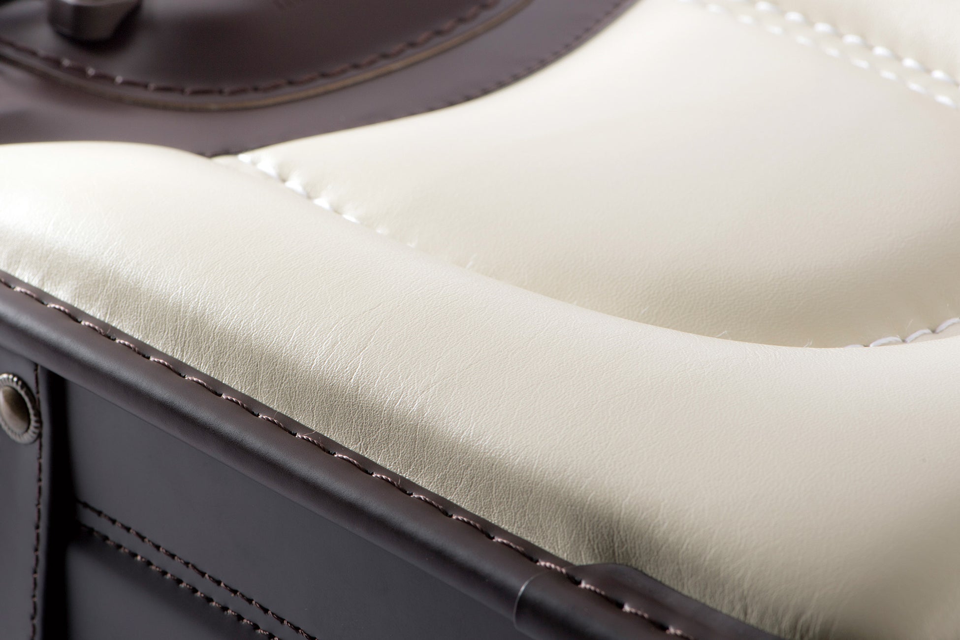 ふたつの質感が奏でる上質なコントラスト。 傷が目立ちにくい革と風合いのある革。