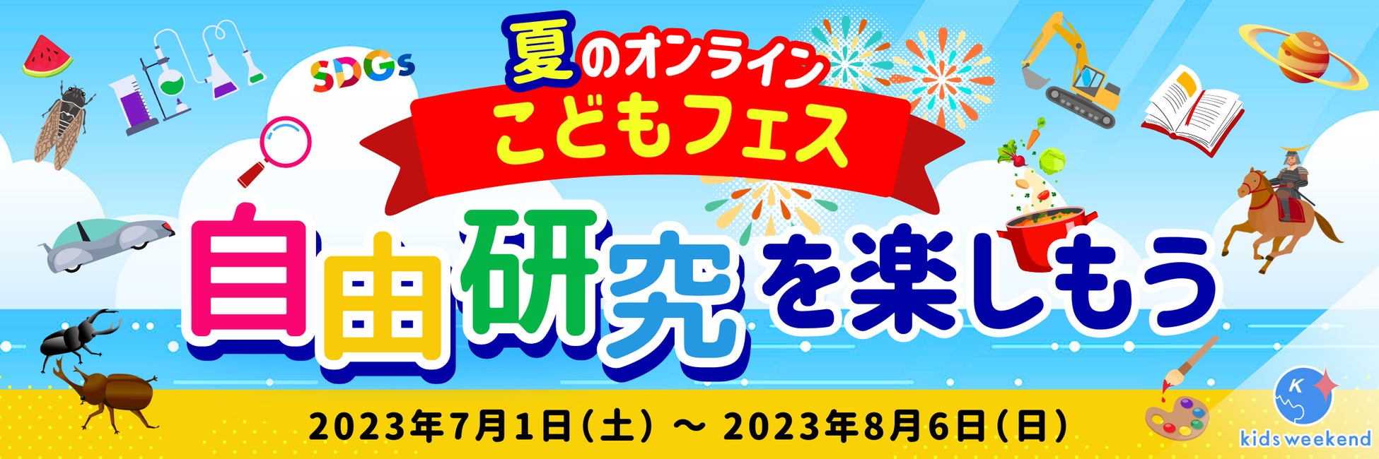【開催告知】自由研究のテーマ探しに悩める小学生を楽しくレスキュー!キッズウィークエンド『夏のオンラインこどもフェス ―自由研究を楽しもう』が2023年7月1日(土)~8月6日(日)に開催!