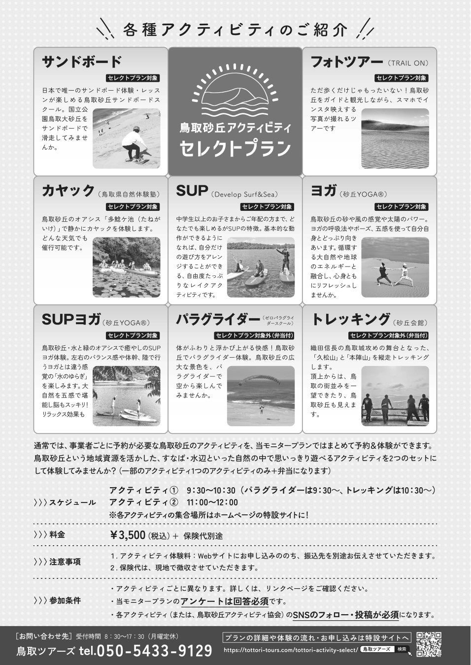 鳥取砂丘を楽しむ新プラン!アクティビティセレクトプランのチラシを制作しました