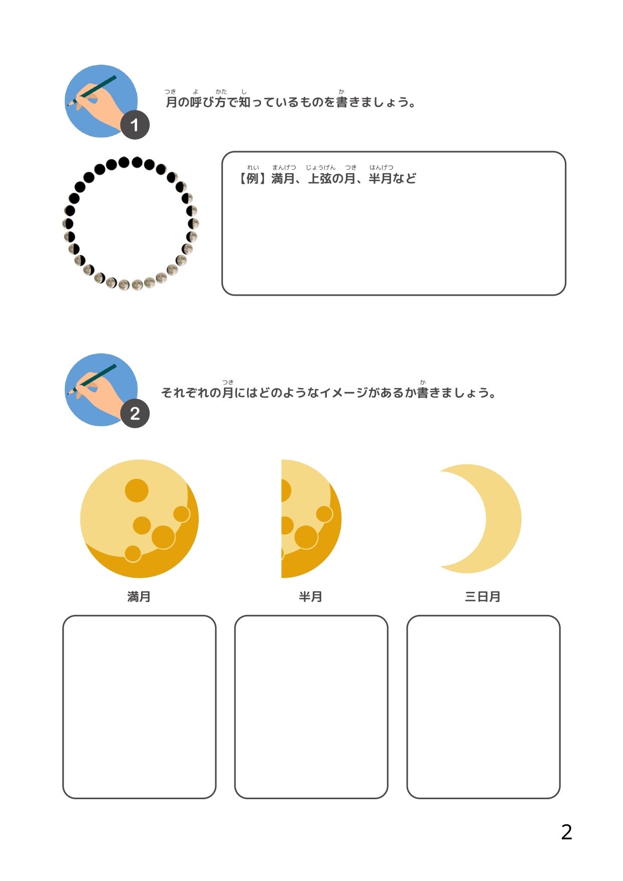また、月の満ち欠けや見え方にもふれることで、国語の学びを理科へと広げ、教科横断型の学びを1~2時間で実践できる内容となっています。先生方が授業に取り入れやすい構成で、子どもたちのことばへの感性と自然への関心の双方を育みます。