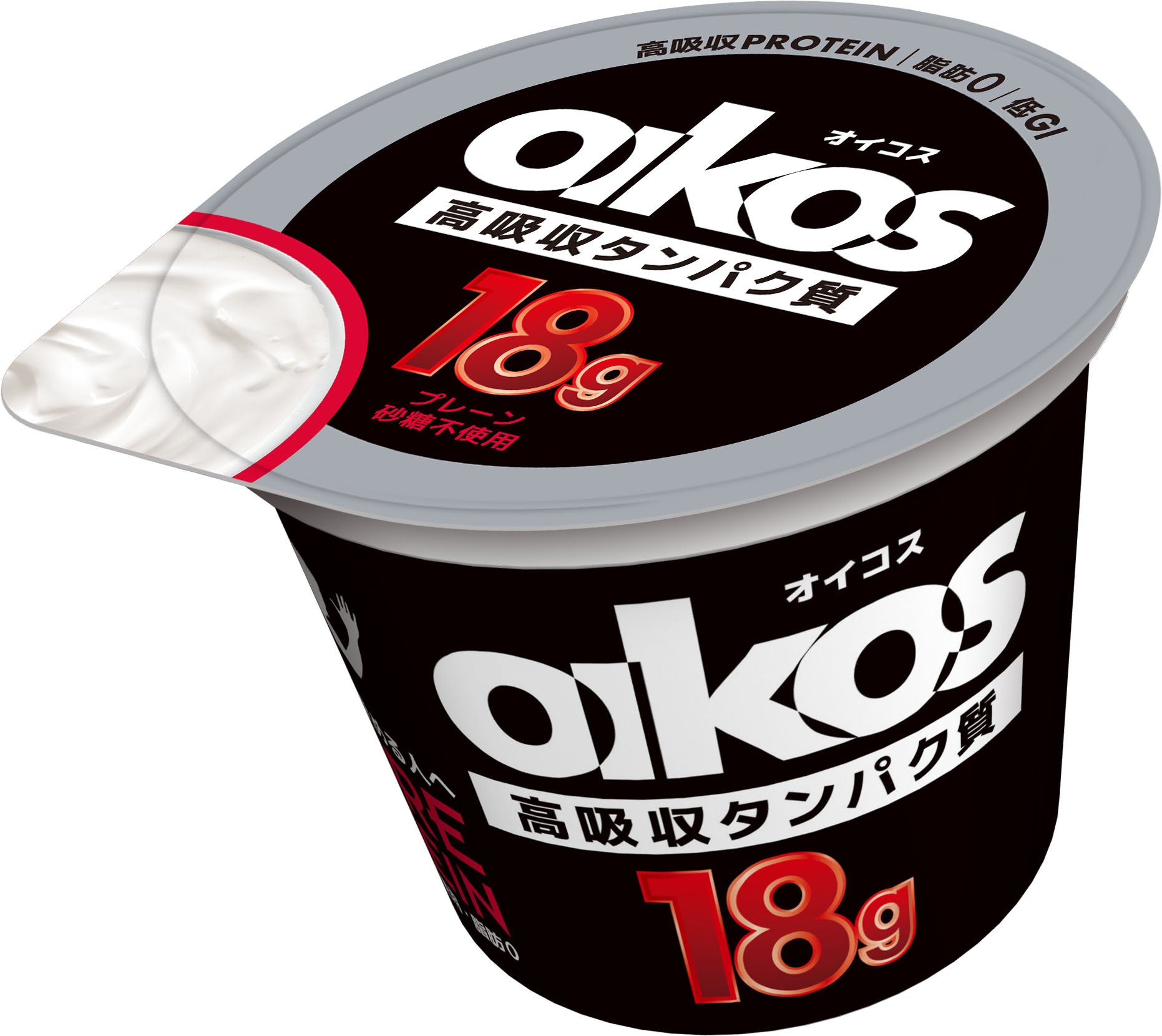 「ダノン オイコス ヨーグルト」は、2022年に国際標準化された手法※3により、スポーツをするカラダを支える低GI※4であることが日本での臨床試験で実証されました。さらにこのたび、ダノンジャパンが実施した分析や臨床試験により、「ダノン オイコス ヨーグルト」の全ラインナップに含まれるタンパク質が、体に吸収される割合が高く、筋肉合成などに有効利用される「高吸収タンパク質」であることが実証されました。この結果をふまえ、「ダノン オイコス ヨーグルト」の全ラインナップを、タンパク質量に留まらない、吸収率を押し出した新たなパッケージにリニューアルします。新パッケージでは、白背景にオイコス独自の黒い文字の「高吸収タンパク質」表記が新たに加わります。