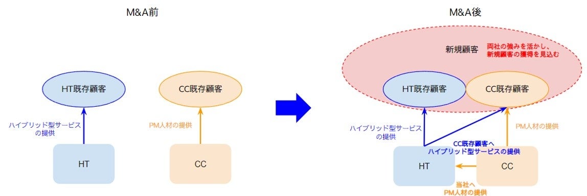 当社が顧客に提供する「ハイブリッド型サービス」の安定性、品質の向上が期待できること、現在の対象会社の顧客に対して、労働者派遣サービスだけでなく、当社の「ハイブリッド型サービス」の提供が可能となること等を想定しております。