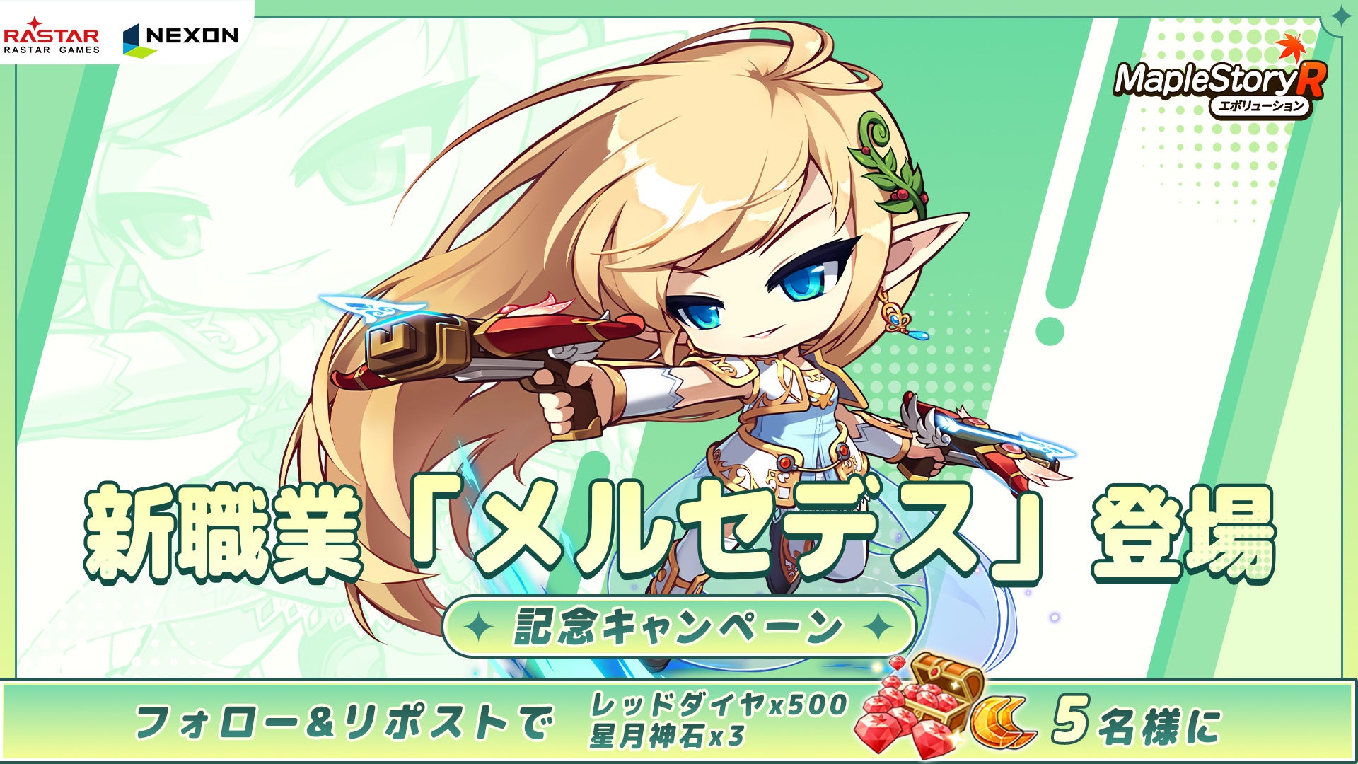 ネクソン監修の『メイプルストーリーR: エボリューション』と『BugcatCapoo』のコラボ決定!英雄「メルセデス」が職業カードに新規登場!