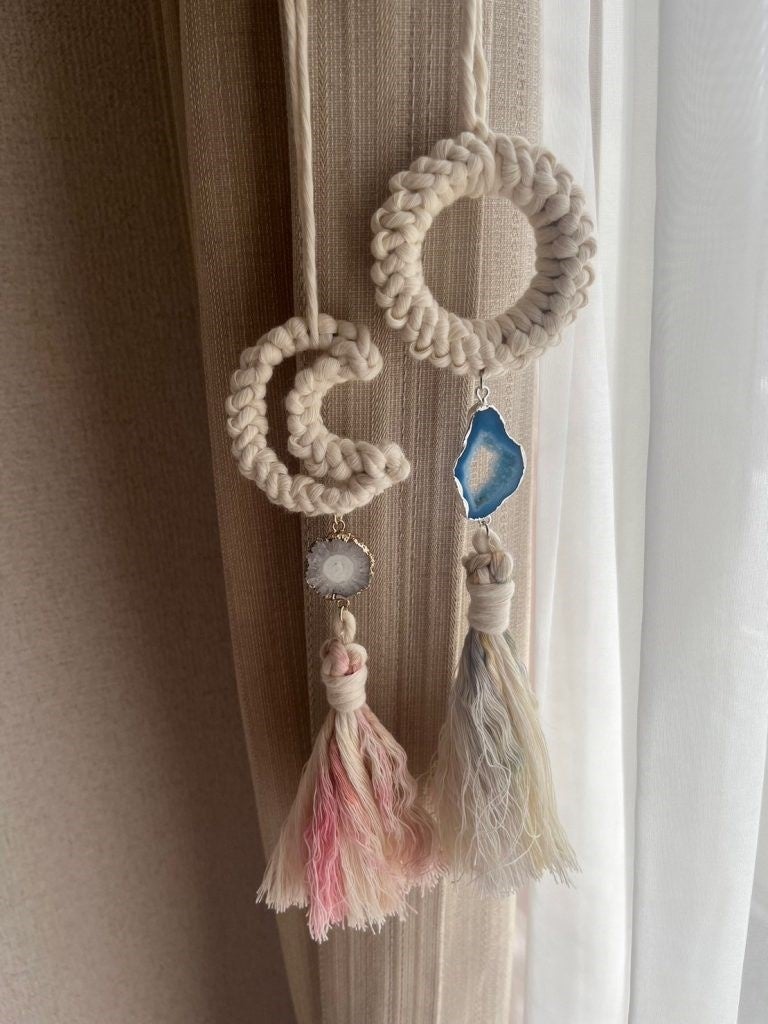 たくさんあるオーガニックのマクラメ糸からお好きなものを選んでいただき丸や月のモチーフに編み込みます。お好きな天然石チャームを付け、タッセルを付けて完成!お部屋に飾っても、クリスマスツリーのガーランドにもお使い頂けるこの季節にピッタリなアイテムとなっています。ワークショップと同時にプチマルシェも開催します。マクラメキーホルダーやミニポーチ、天然石アクセサリーも販売しますので、是非ご覧ください。