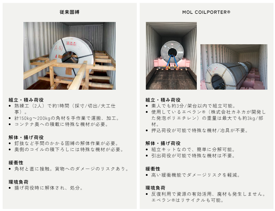 (2020年4月22日付当社プレスリリース「NVOCC事業の差別化商品、MOL COILPORTER®を開発~スチールコイルのコンテナ輸送における次世代架台~」もご参照下さい。)