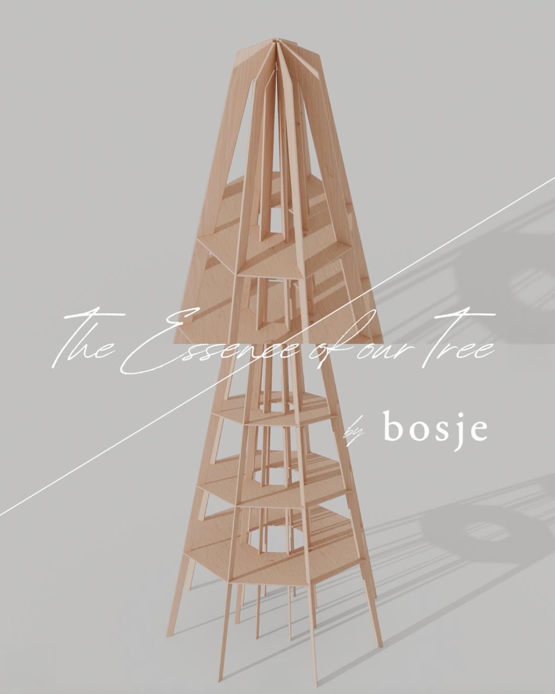 インテリアブランド bosje による白樺のモニュメントに、出展者の嗜好品が集まる“嗜好のツリー”が登場。