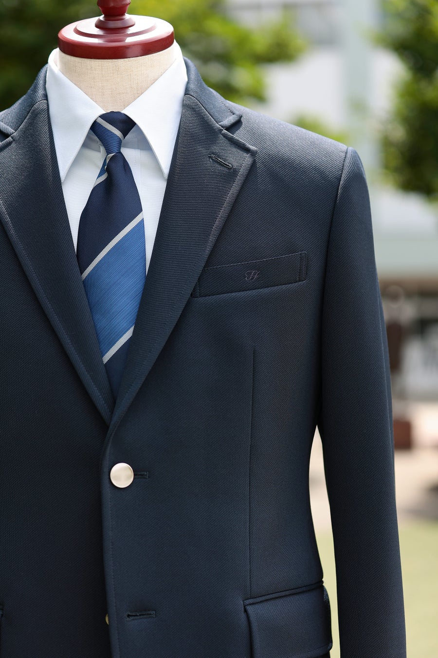ポリエステル100%の生地を使用した当社開発の「ハイパフォーマンスジャケット」を採用しています。ハイパフォーマンスジャケットは、学生服で一般的なウール混素材に比べて色落ちや型が崩れにくく、ストレッチ性の向上・軽量化・家庭洗濯可能と機能性を大幅に向上しています。