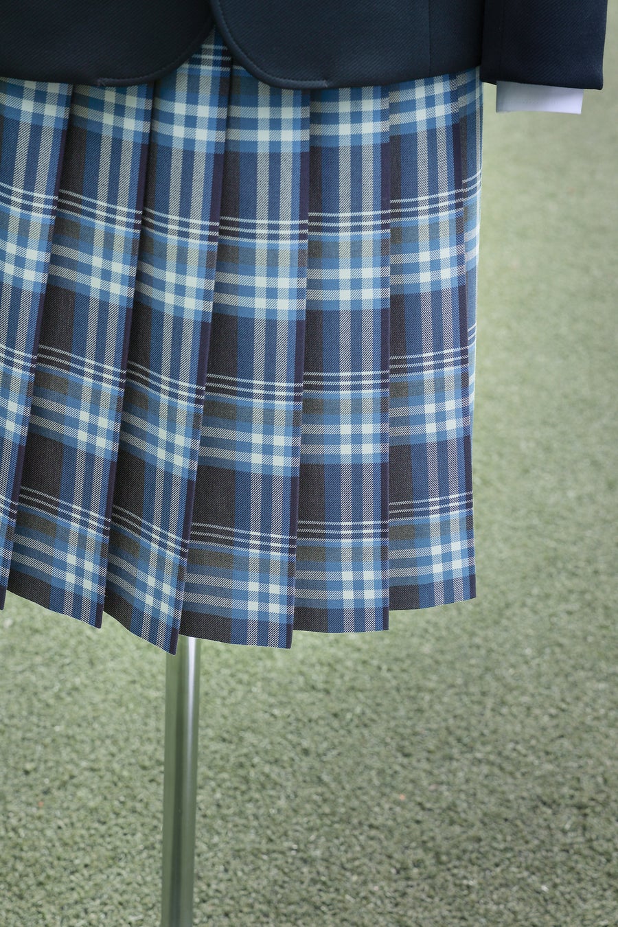 スラックスに学校制服では珍しいシャドーチェック柄を、ネクタイとリボンにはレジメンタルストライプ柄を採用し、無地のメタリックなボタンをデザインのアクセントに取り入れました。時代を経ても生徒から愛され、憧れられる制服が完成しました。