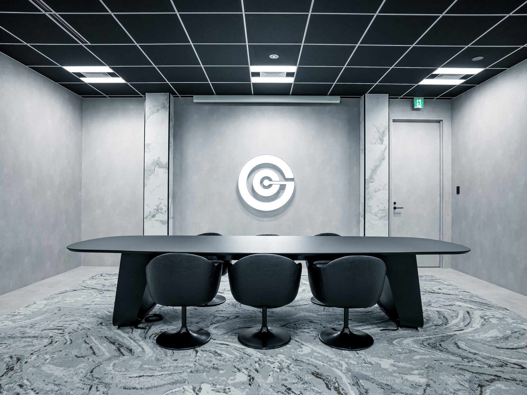 お客様をお迎えすることも多いオフィスでもあるため、エントランスは重圧な作りを意識。当社のコーポレートカラーでもある黒と白を貴重とした色彩を選びました。