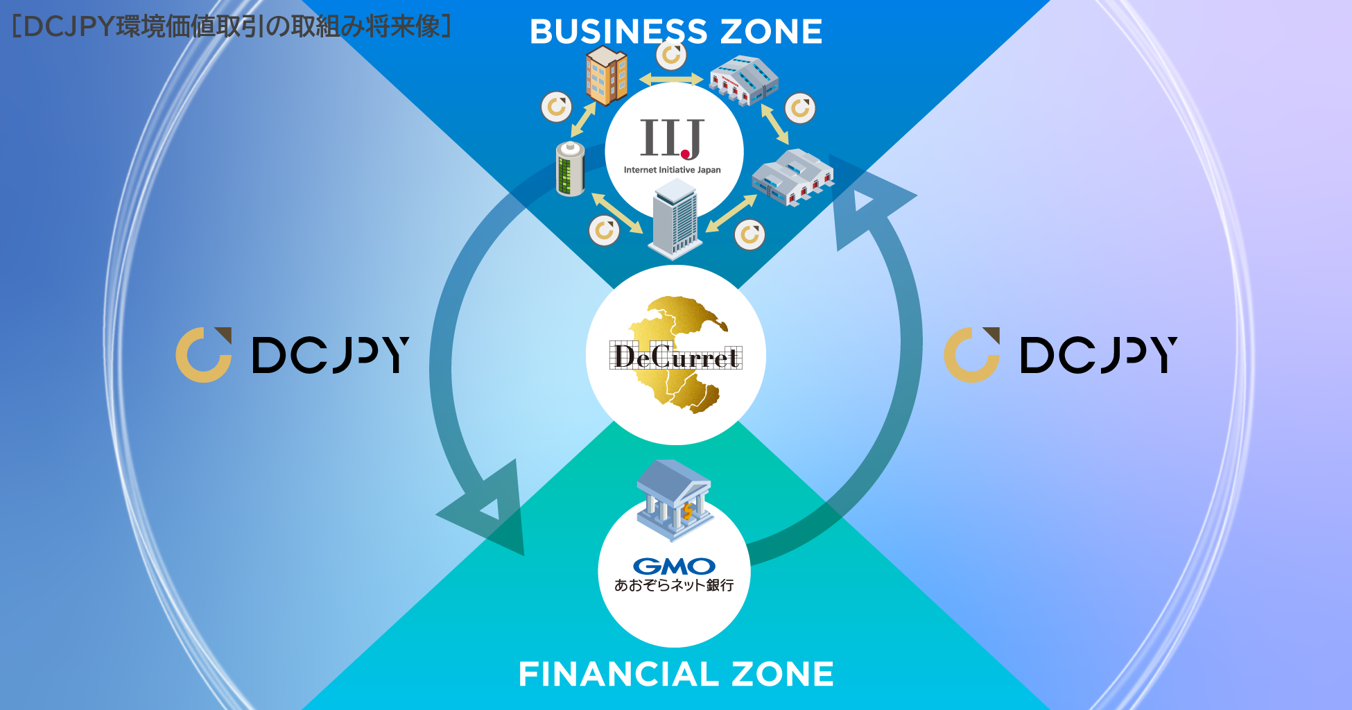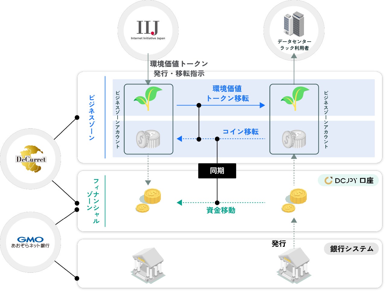 株式会社ディーカレットDCP(代表取締役 会長兼社長執行役員:村林 聡、以下「ディーカレットDCP」)、GMOあおぞらネット銀行株式会社(代表取締役会長:金子 岳人/代表取締役社長:山根 武、以下「GMOあおぞらネット銀行」)、および株式会社インターネットイニシアティブ(代表取締役 社長執行役員:勝 栄二郎、以下「IIJ」)は、ディーカレットDCPが今年7月に本番検証に向けたシステムリリースをした「DCJPYネットワーク」において、GMOあおぞらネット銀行が発行するデジタル通貨DCJPY※1を利用して、IIJが環境価値のデジタルアセット化※2とDCJPYによる決済取引を開始したことをお知らせします。